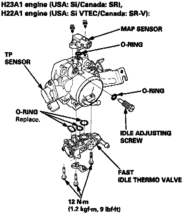 After reassembly, adjust the throttle cable, and A/T throttle control cable for cars with A/T.