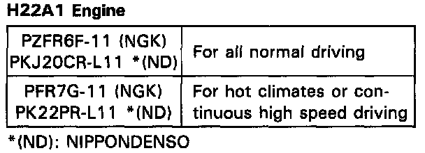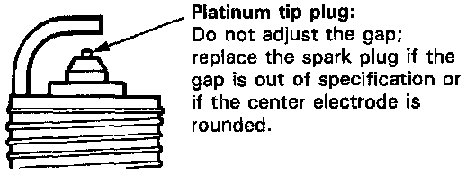 H22A1 Engine: Do not adjust the gap of Platinum Tip Plugs; replace the Spark Plug if the gap is out of specification or if the Center Electrode is rounded.