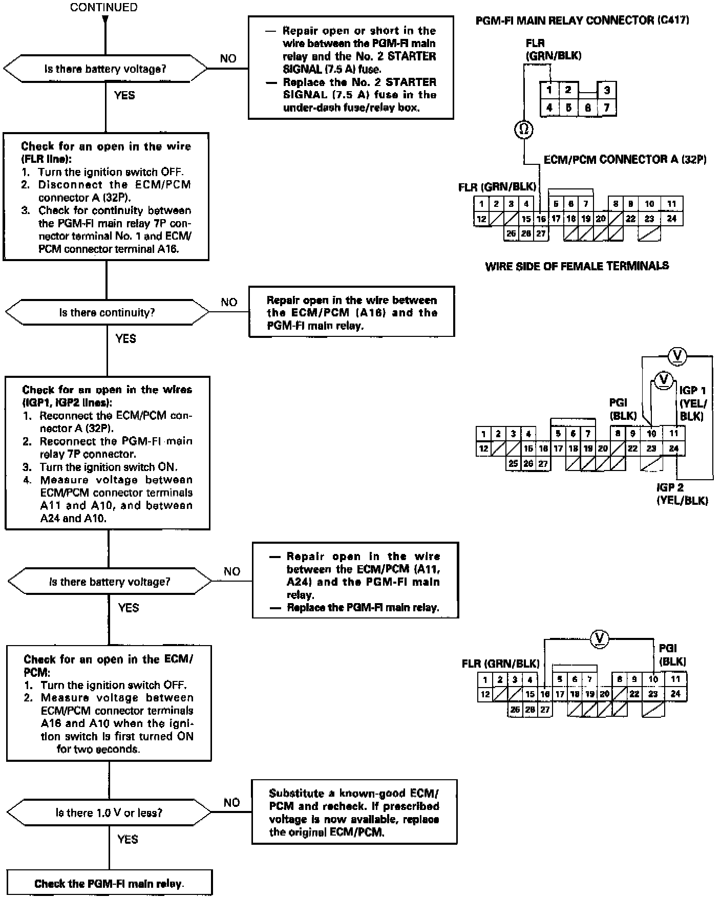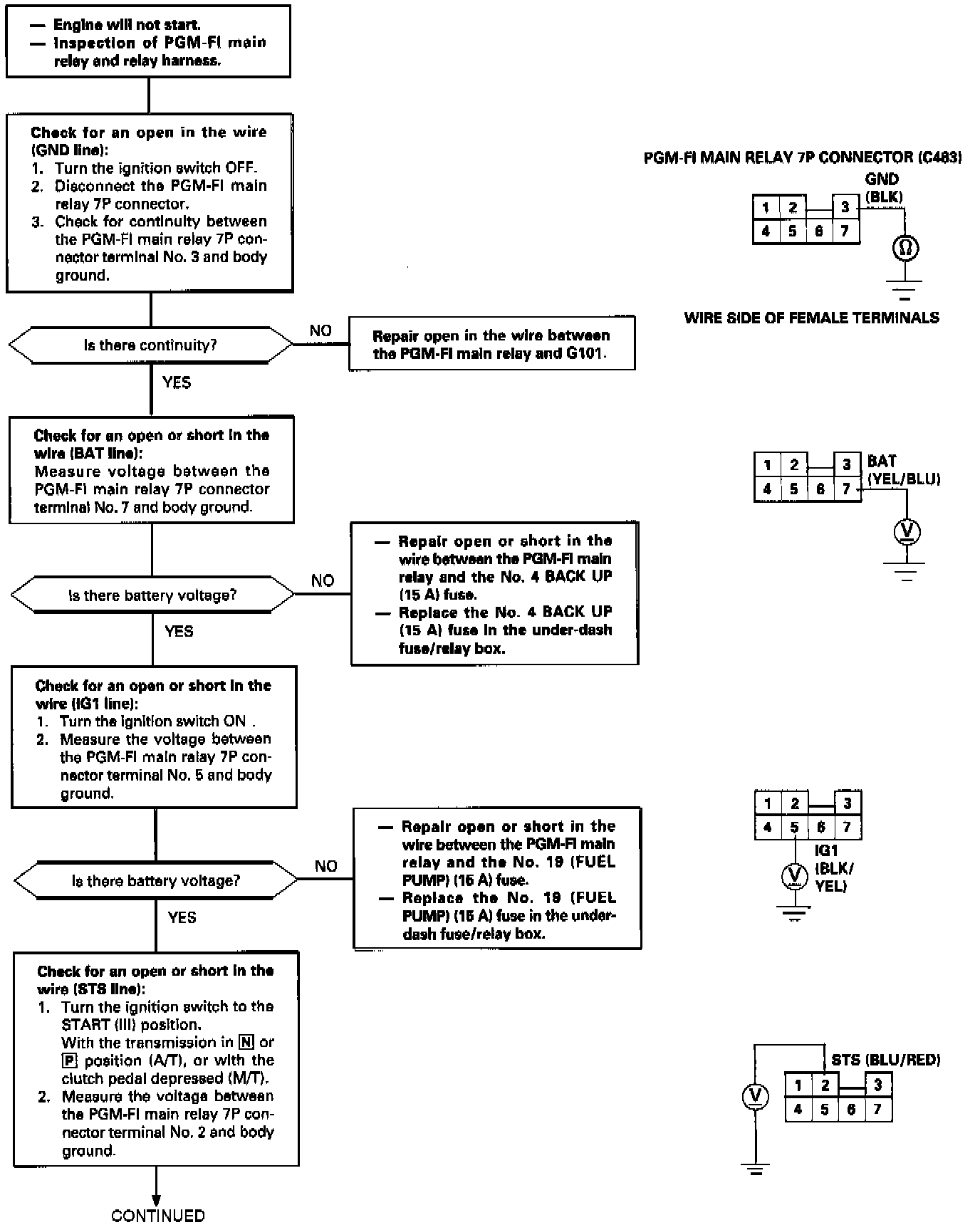 Main Relay (Computer/Fuel System): Testing and Inspection