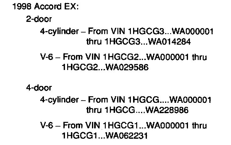1998 Accord - See VEHICLES AFFECTED