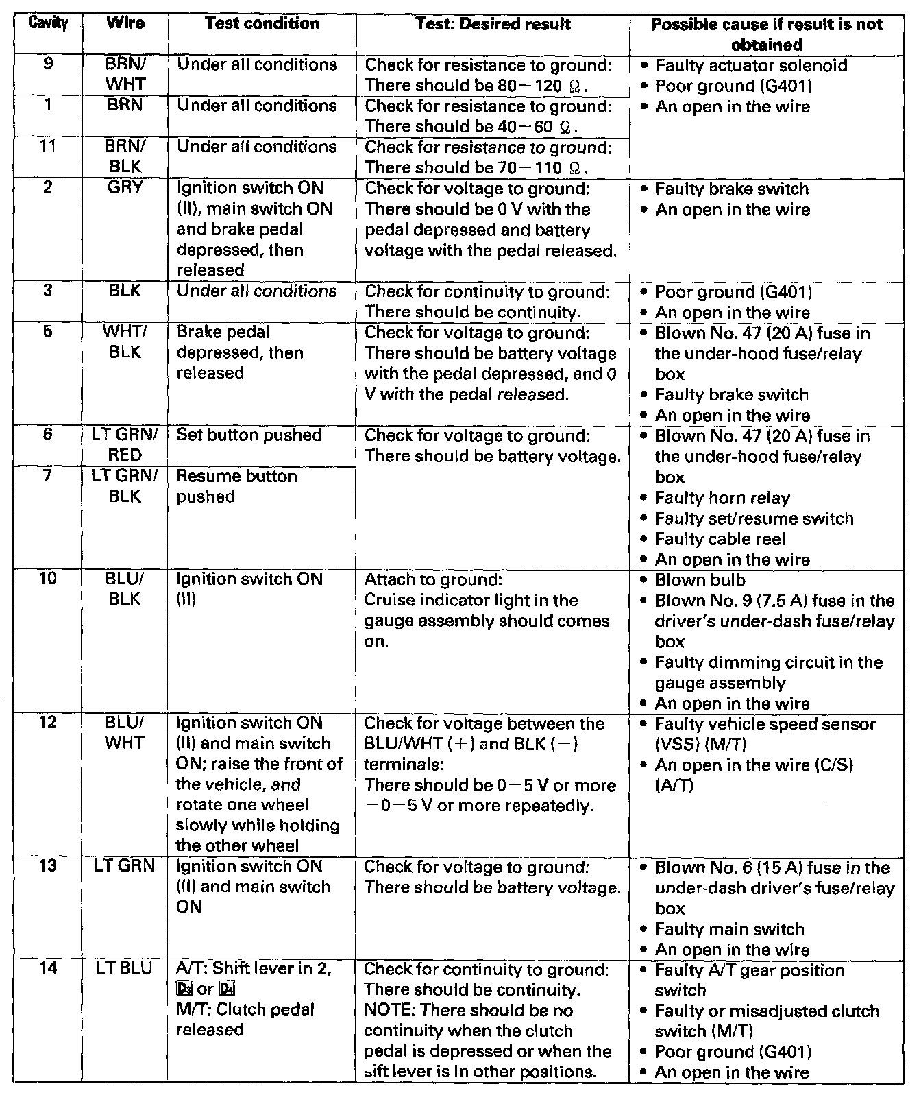 Cruise Control Module: Testing and Inspection