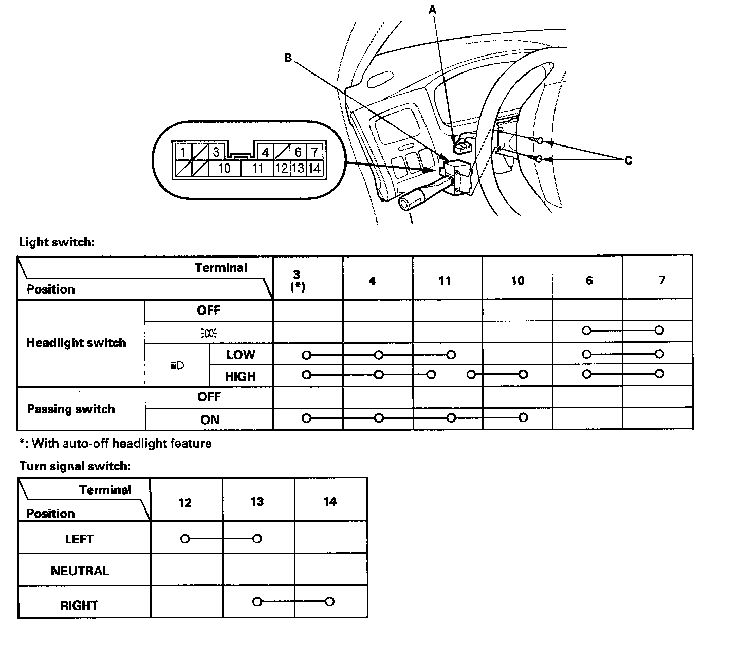Combination Light Switch Test/Replacement1. Remove the dashboard lower cover and steering column covers.