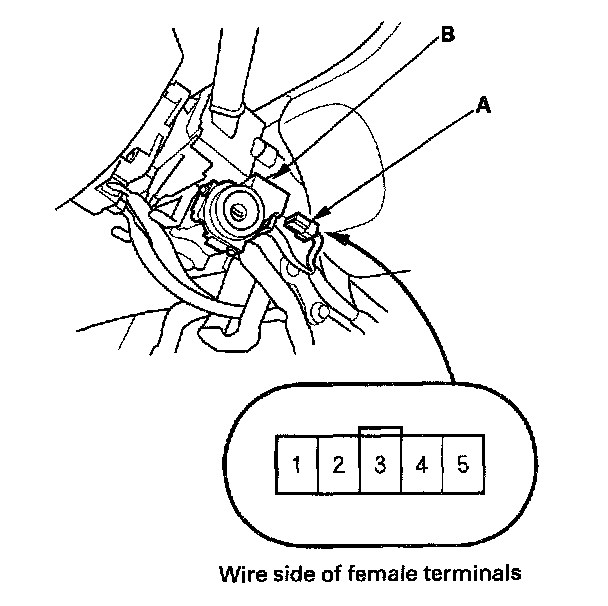 4. Disconnect the 5P connector (A) from the immobilizer receiver unit (B).