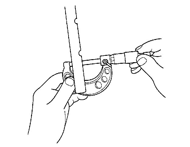 Measure the intake rocker shaft and exhaust rocker shaft.1. Measure the diameter of the shaft at the first rocker location.