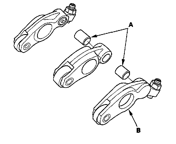 - When reassembling the primary rocker arm (B), carefully apply air pressure to the oil passage of the rocker arm.