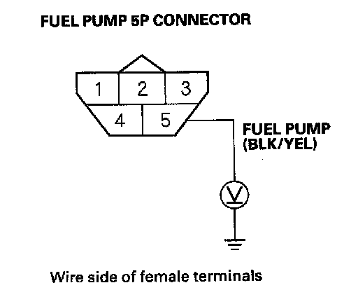 6. Check that battery voltage is available between the fuel pump 5P connector terminal No.5 and body ground when the ignition switch is turned ON (II).