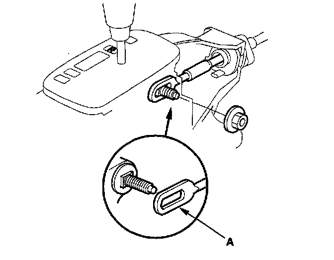 3. Remove the nut securing the shift cable end (A), then separate the shift cable end from the shift lever assembly.