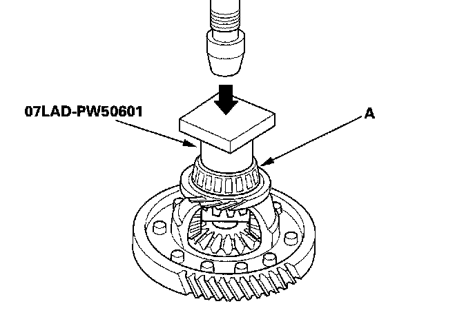 3. Install the new bearings (A) with the special tool and a press. Press each bearing on until it bottoms. There should be no clearance between the bearings and the carrier.