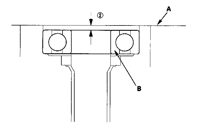 5. Measure distance (2) between the end of the clutch housing (A) and bearing inner race (B) with a straight edge and depth gauge. Measure at three locations and average the readings.