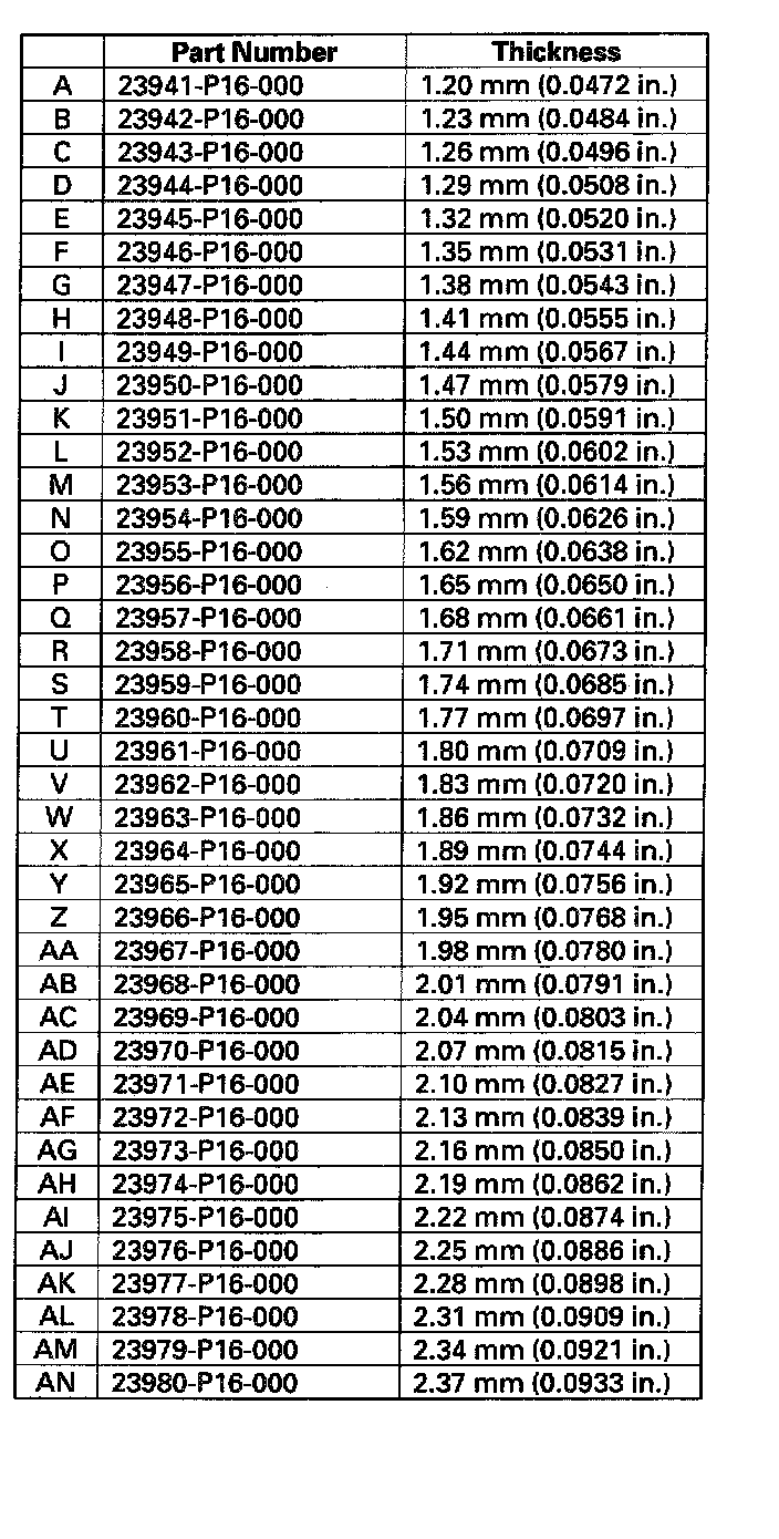 6. Select the proper 78 mm shim from the chart.
