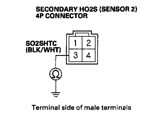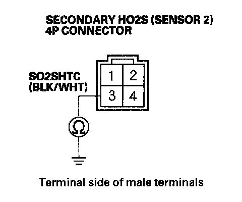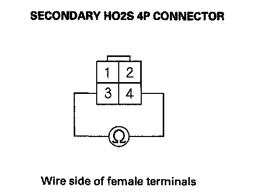 5. At the Secondary HO2S side, measure resistance between the Secondary HO2S 4P connector terminals No.3 and No.4.