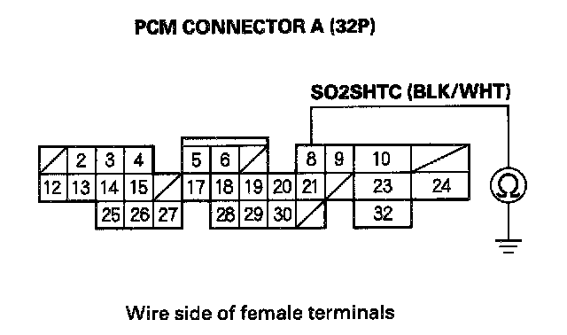 16. Measure voltage between the PCM connector terminal A8 and body ground.