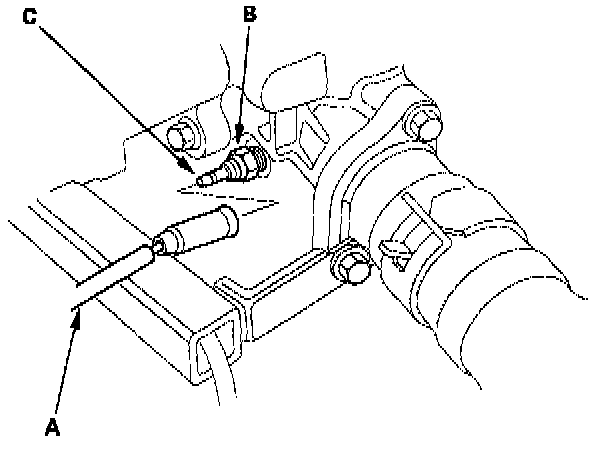 2. Using an ohmmeter, measure the change in resistance between the positive terminal (C) and the engine (ground) with the engine cold and with the engine at operating temperature.