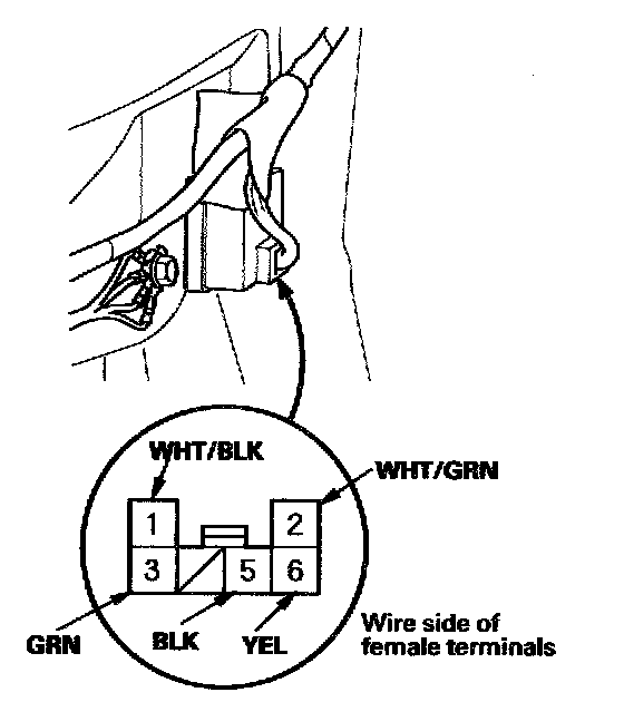 4. Reconnect the 6P connector. Make sure the BRAKE LAMP light in the safety indicator comes on and goes off when the No.3 (Sedan) or 5 (Coupe) terminal of the 6P connector is grounded, the brake pedal is depressed, and the engine is running.