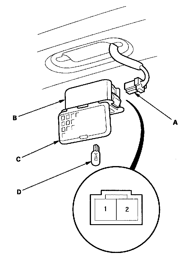 5. Make sure that the bulb (D) is OK. Check for continuity between the No.1 and No.2 terminals.