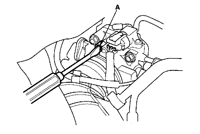 5. Adjust the idle speed, if necessary, by turning the idle adjusting screw (A) 1/4-turn clockwise or counterclockwise.