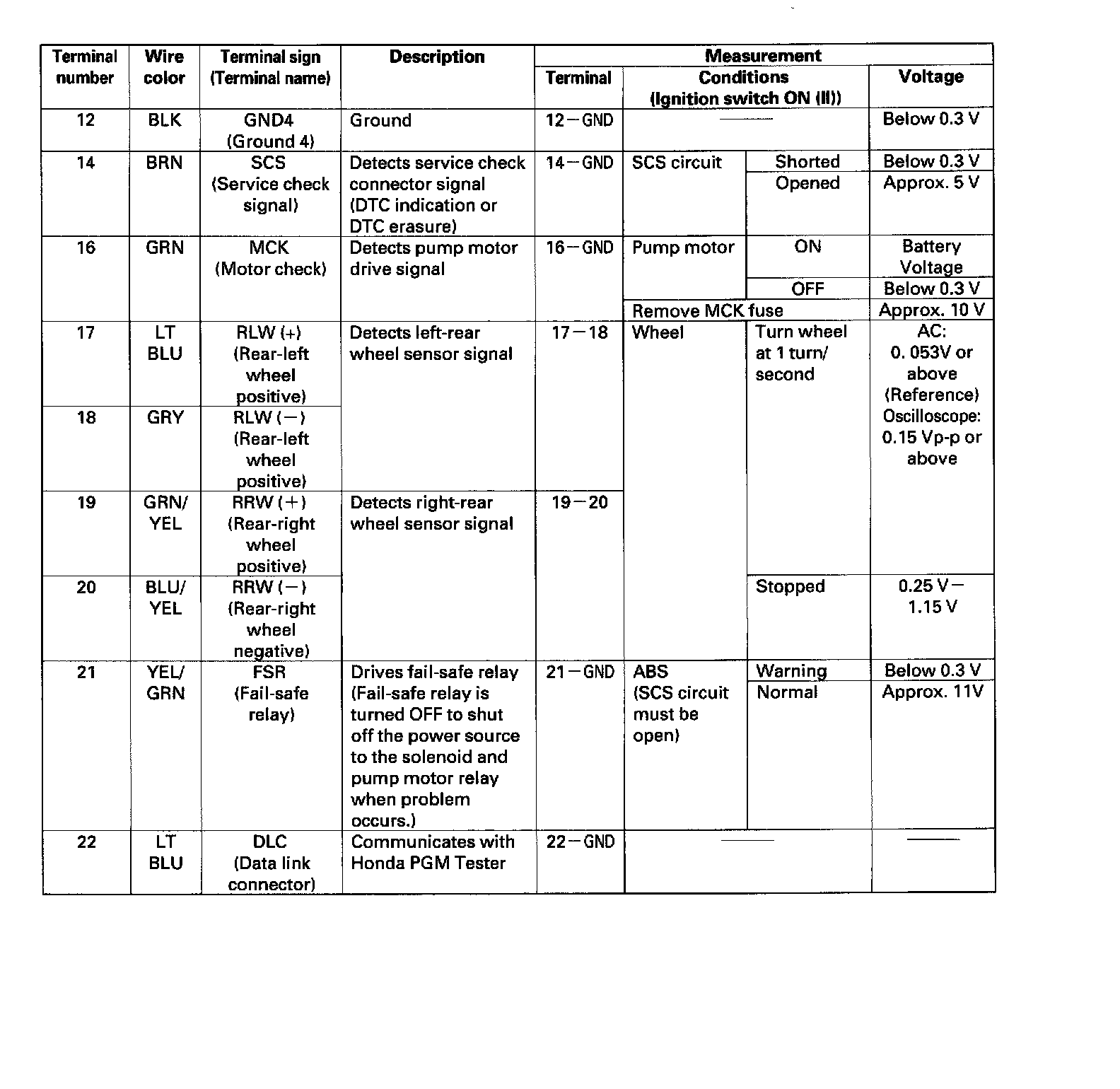 The ABS can be diagnosed with the Honda PGM Tester.