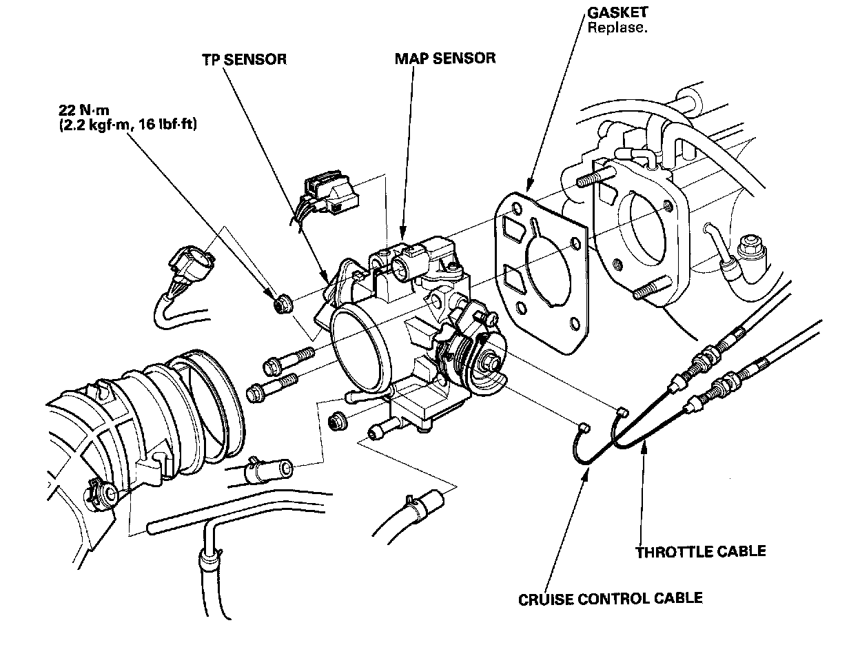 - After reassembly, adjust the cruise control cable, and the throttle cable.