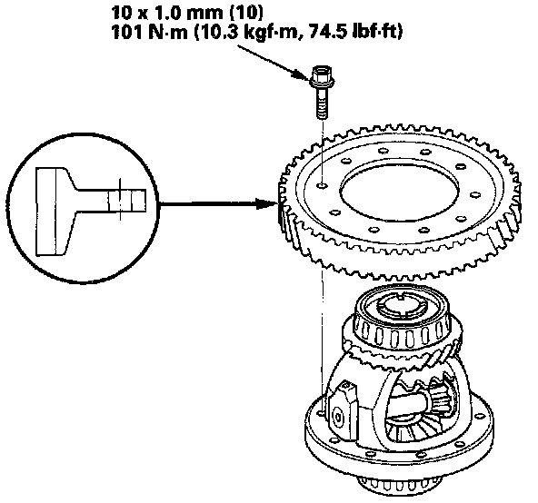 1. Remove the bolts (left-hand threads) in a crisscross pattern in several steps, then remove the final driven gear from the differential carrier.