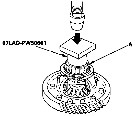 1. Place the differential assembly on V-blocks (A), and install both axles.