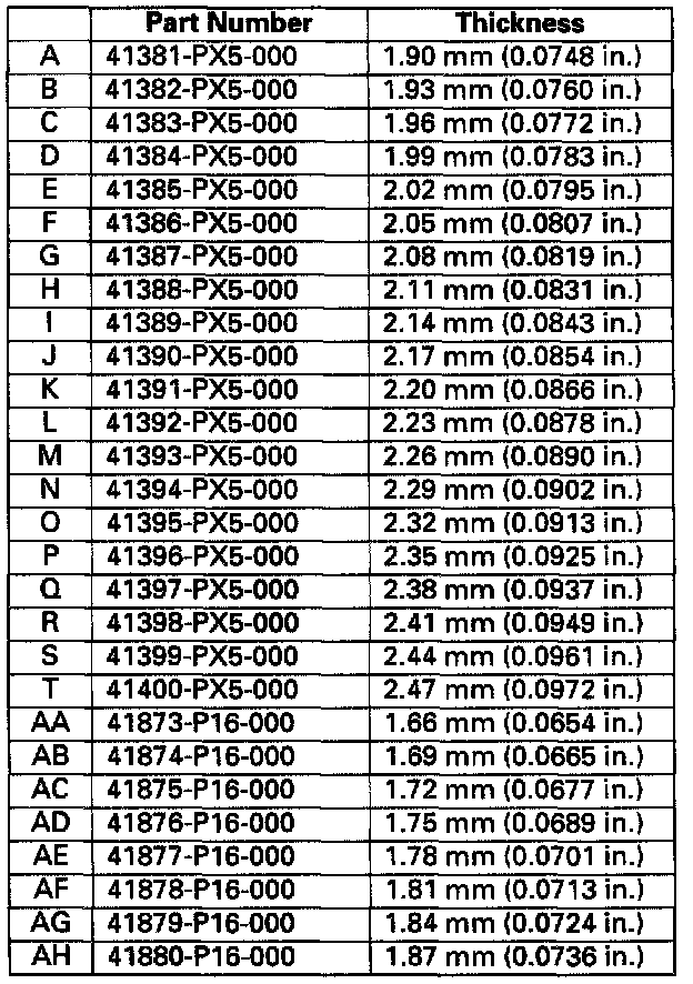 NOTE: Each shim size up or down from standard makes about 0.3-0.4 Nm (3-4 kgf-cm, 2.6-3.5 inch lbs.) difference in preload.
