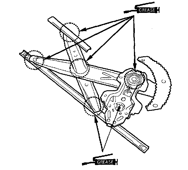 6. Grease the moving portions of the regulator (A) indicated by the arrows.