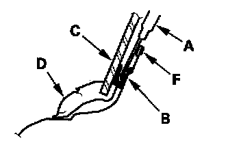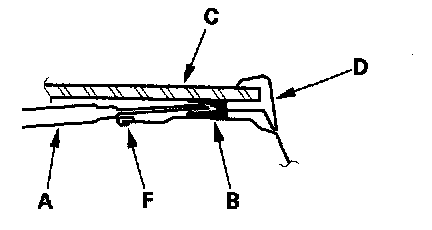 - Apply protective tape (F) along the edge of the entire quarter glass opening flange.