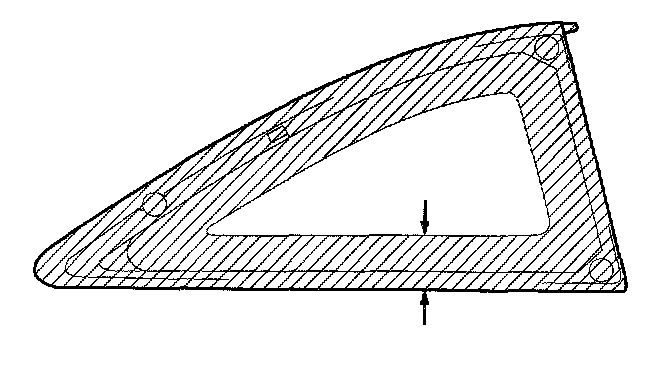6. With a knife, scrape the old adhesive smooth to a thickness of about 2 mm (0.08 in.) on the bonding surface around the entire quarter glass opening flange: