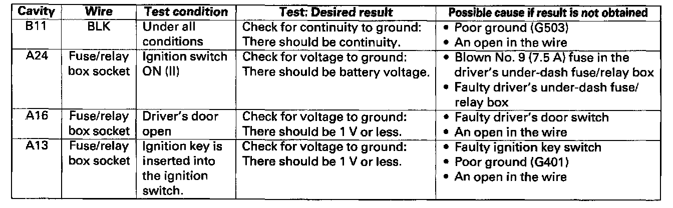 Ignition Key In Signal: Testing and Inspection