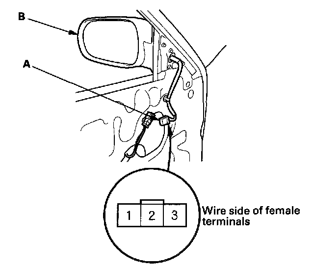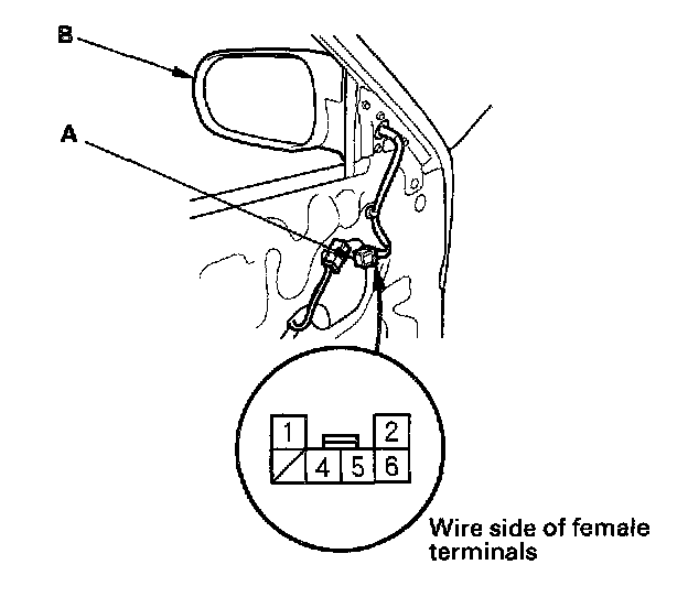 2. Disconnect the 3P or 6P connector (A) from the power mirror (B).