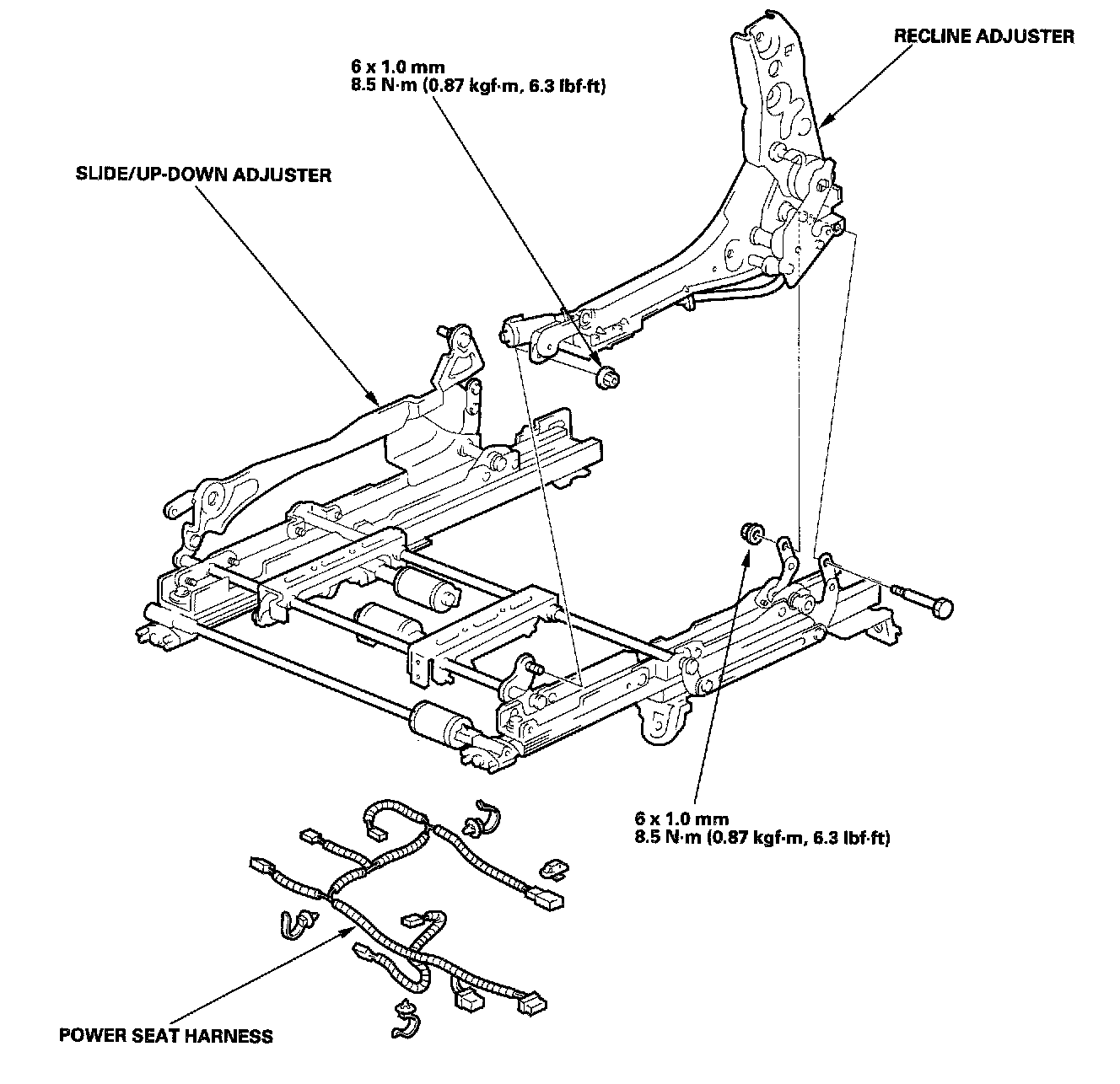 - Check operation of the recline adjuster and slide/up-down adjuster.