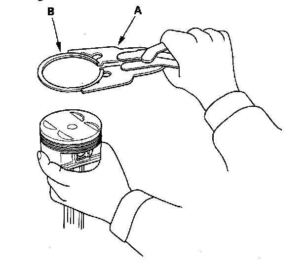 2. Measure the piston ring end-gap (B) with a feeler gauge: