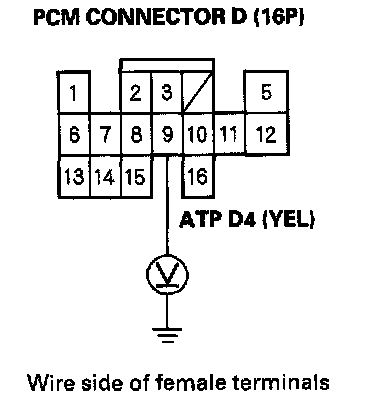 NO - Check for short to ground in the wire between the D9 terminal and the transmission range switch. If wire is OK, check the transmission range switch.