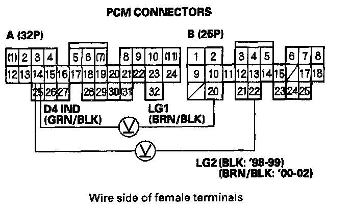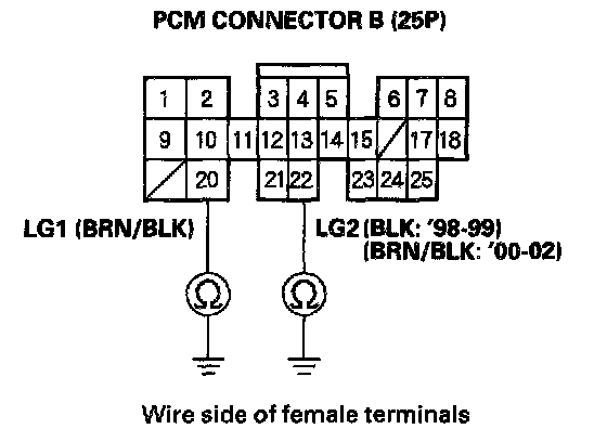 15. Check for continuity between body ground and B20 and B22 terminals.