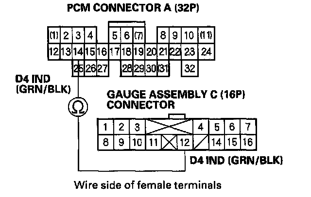 Troubleshooting1. Turn the ignition switch ON (II), and watch the D4 indicator light.
