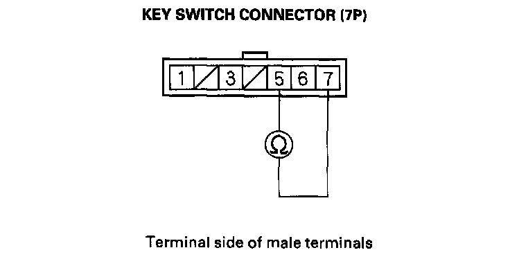 3. Check for continuity between the No. 5 and No. 7 terminals when the key is pushed, and check for no continuity when the key is released.