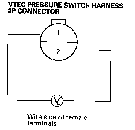 10. Measure voltage across the VTEC pressure switch harness 2P connector.