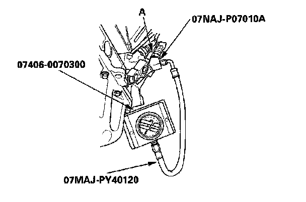 14. Remove the VTEC pressure switch (A) and install the special tools as shown, then reinstall the VTEC pressure switch.