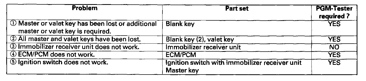 - If it is necessary to rewrite the ECM/PCM to learn a new key, the dealer needs the customer's vehicle, all its master keys and valet keys, and the Honda PGM Tester equipped with an immobilizer program card. Any key that is not learned during rewriting will no longer start the engine.