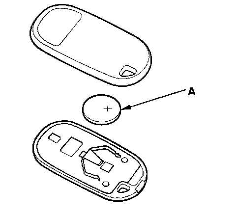 3. Replace the transmitter battery (A) with a new one, and try to lock and unlock the doors with the transmitter by pressing the lock or unlock button five or six times.