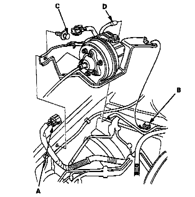 3. Disconnect the vacuum hose (D).