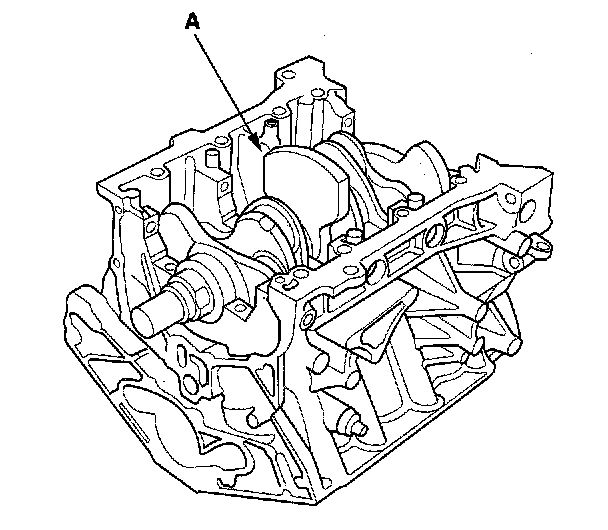 3. Lower the crankshaft (A) into the block.