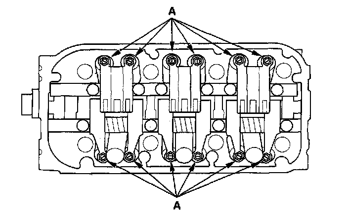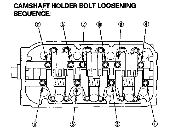 -2 When removing the rocker arm assembly, do not remove the rocker shaft mounting bolts. The bolts will keep the springs and the rocker arms on the shafts.