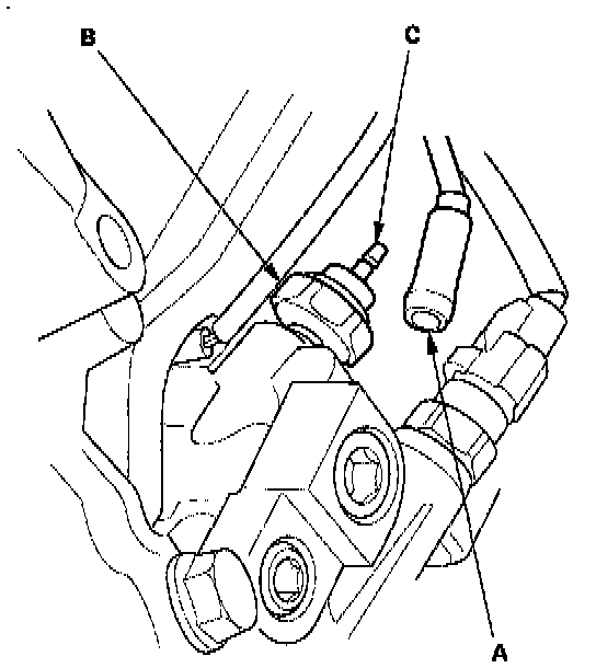 2. Check for continuity between the positive terminal (C) and the engine (ground). There should be continuity with the engine stopped. There should be no continuity with the engine running.