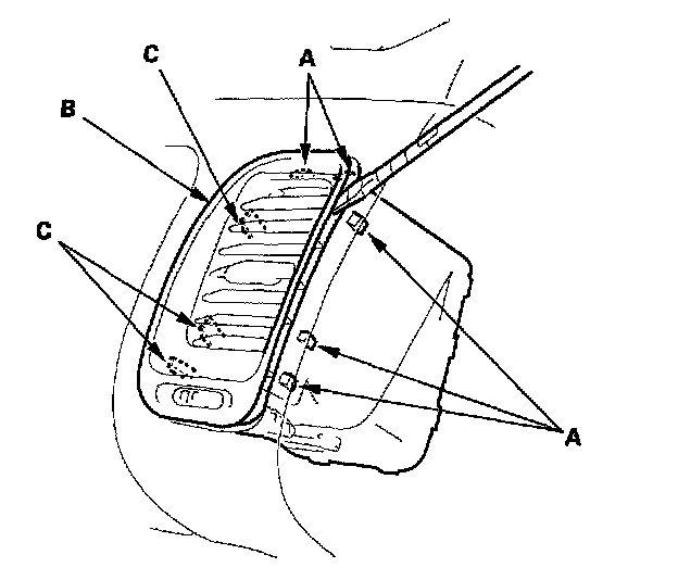 2. Remove the vent by detaching the clips (C).