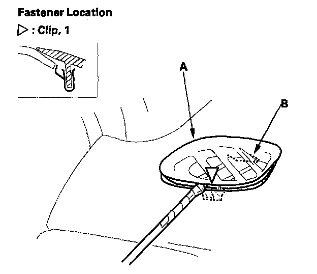 1. Wrap a flat-tip screwdriver with protective tape, and apply protective tape around the related parts to prevent damage. Carefully insert a flat-tip screwdriver next to the clip, and detach the clip by prying on the side defogger vent trim (A). Take care not to scratch the dashboard and related parts.