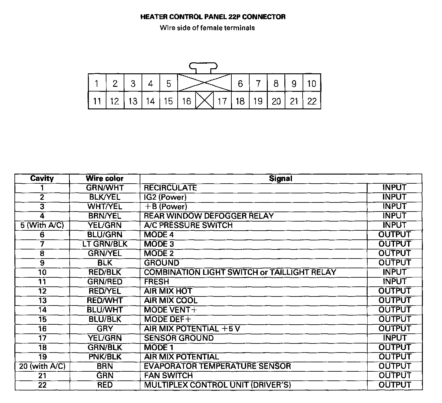 Heater Control Panel 22P Connector: