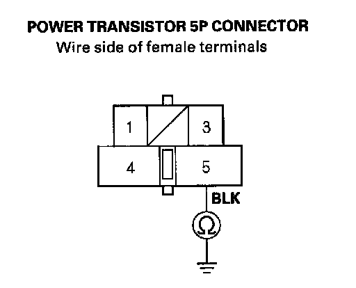 3. Check for continuity between the No.5 terminal of the power transistor 5P connector and body ground.