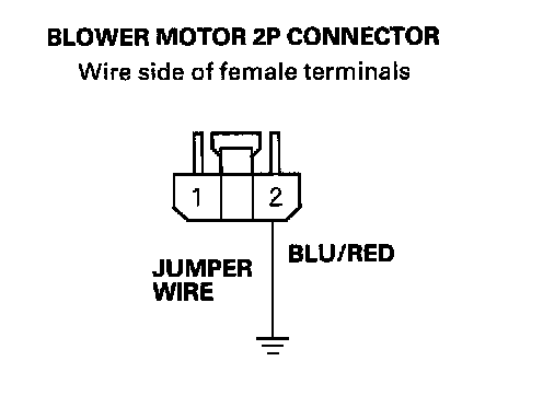 16. Connect the No.2 terminal of the blower motor 2P connector to body ground with a jumper wire.