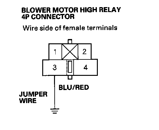 21. Connect the No.3 terminal of the blower motor high relay 4P connector to body ground with a jumper wire.